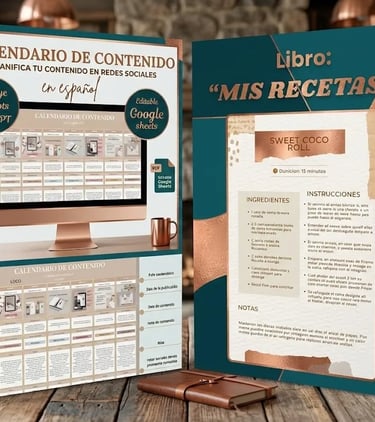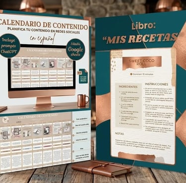 Organiza tu negocio con un planificador de posts para redes sociales con prompts ChatGPT + recetario que te permitirá tener tus recetas de forma digital o impresa.